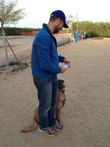 Otra vez lo mismo, el perro se tumba, responde a la técnica pero no permanece tumbado, el adiestrador recuerda una técnica que vio en un seminario, el seminario no le gustó demasiado, no cuadraba mucho con su visión del adiestramiento, pero esta técnica concreta le parece que aquí puede ir bien ¡bingo! Se queda tumbado.