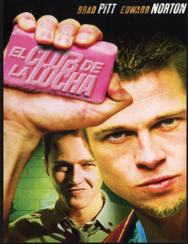 En la imagen original Pitt y Norton se muestran ceñudos y serios ante un fondo oscuro, en su opuesta Marian y Mikel sonríen ante un fondo claro, cerrando perfectamente la idea de un cartel que no es igual al original sino su simétrico luminoso (mucho poder en el lado luminoso también hay). Incluso el cambiar el color del jabón del fucsia original al verde corporativo de Kireba contribuye a esa imagen de inversión positiva.