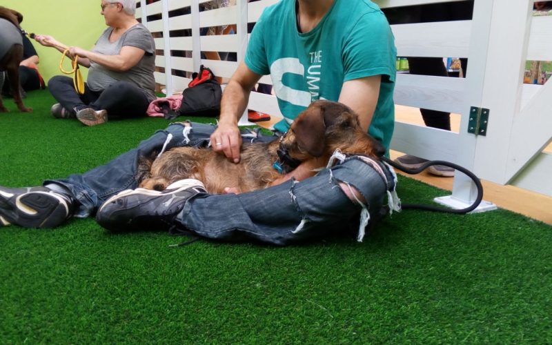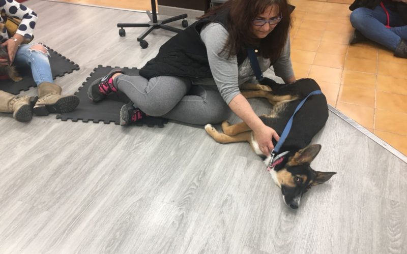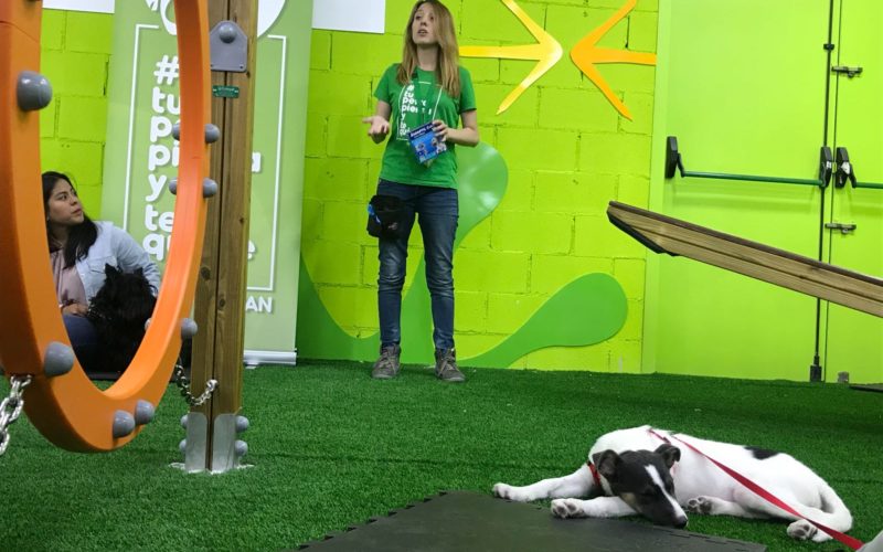 Porque el objeto de este taller era trabajar lo que está dentro del perro, lo que no se ve: eliminar el estrés, evitar la ansiedad y ofrecerles recursos para relajarse en ambientes y/o momentos de tensión. Y teníamos dudas sobre el interés que despertaría ¿realmente acudirían quienes viven con perros a una actividad tan aparentemente inconcreta? ¿Invertiría la gente el tiempo de su fin de semana en algo que no es que el perro acuda, deje de romper cosas o camine sin tirar?